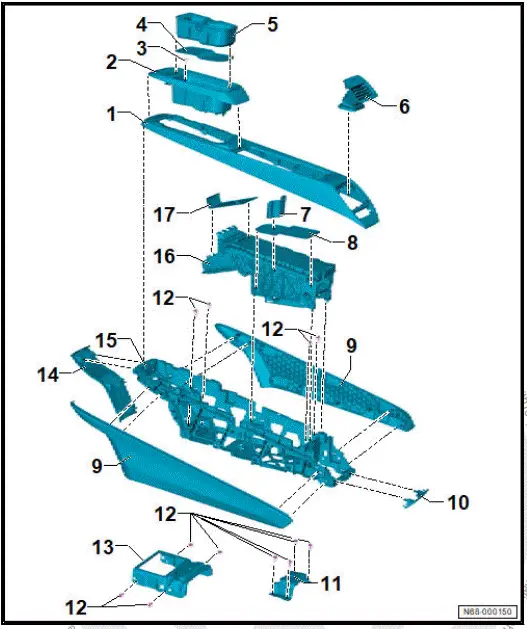 - ⇒ Rep. gr. 68 ; Removing and installing centre console